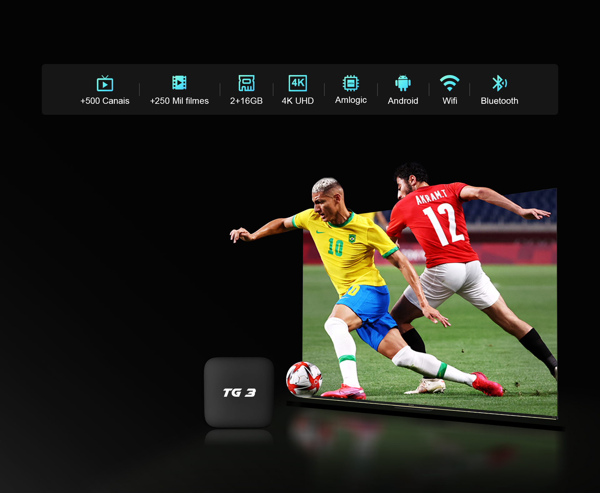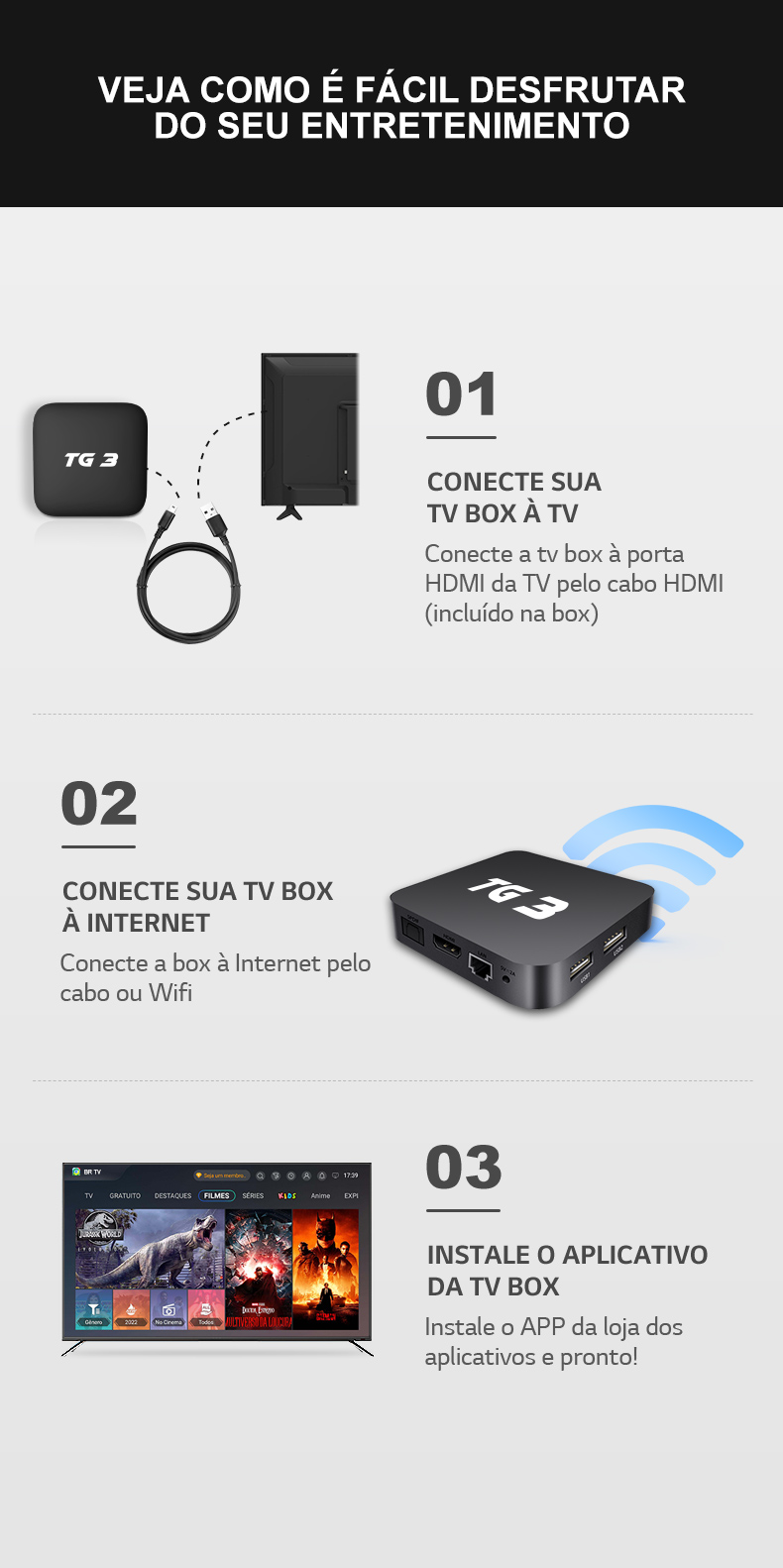 TV pelo cabo HDMI (incluído na box)